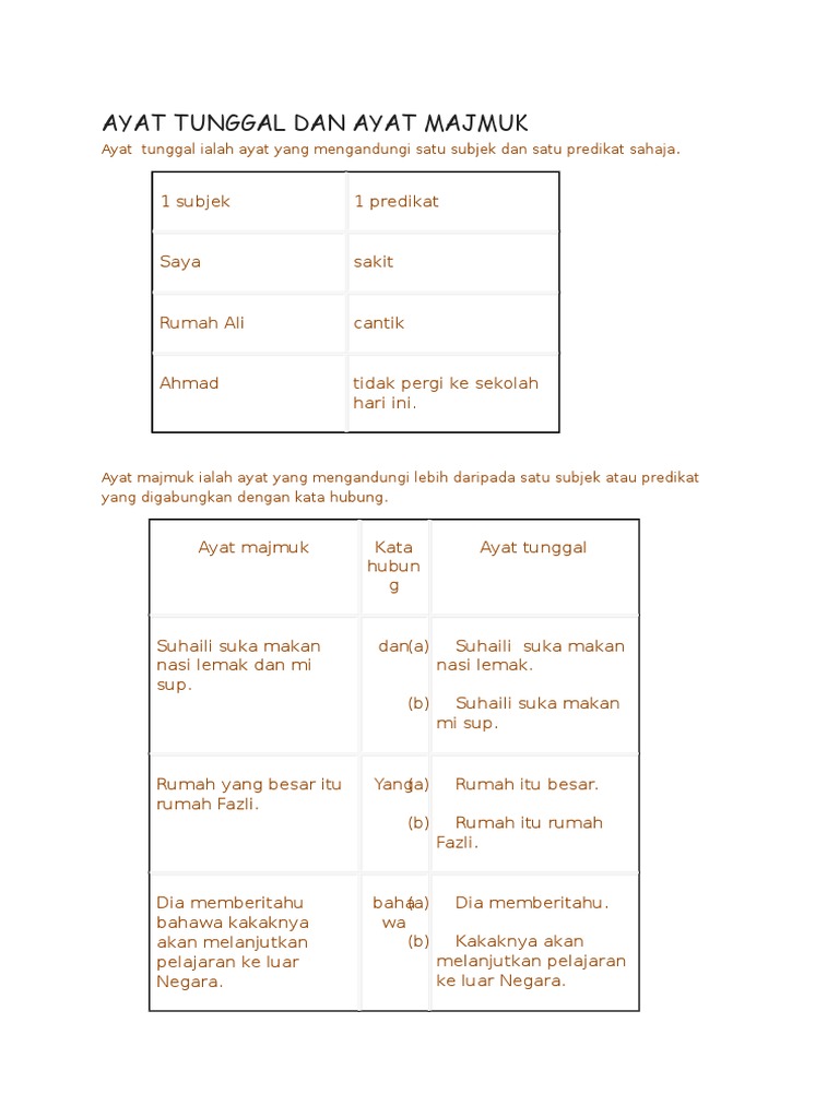 Ayat Tunggal Dan Ayat Majmuk Pdf
